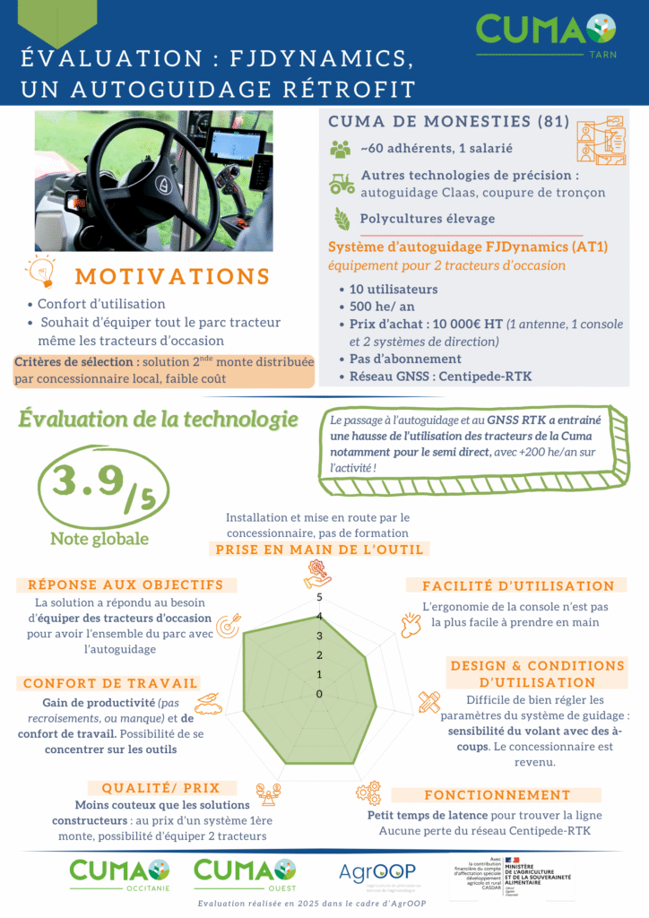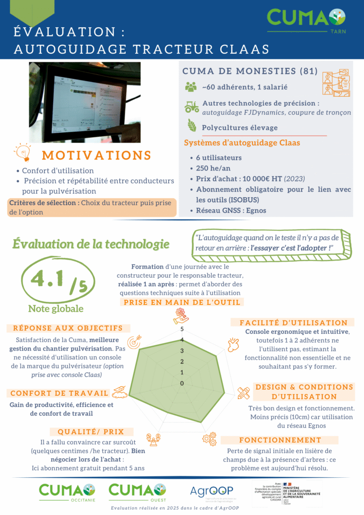 Évaluation de systèmes d'autoguidage : retours de la Cuma de Monesties sur les systèmes d'autoguidage Claas et FJDynamics