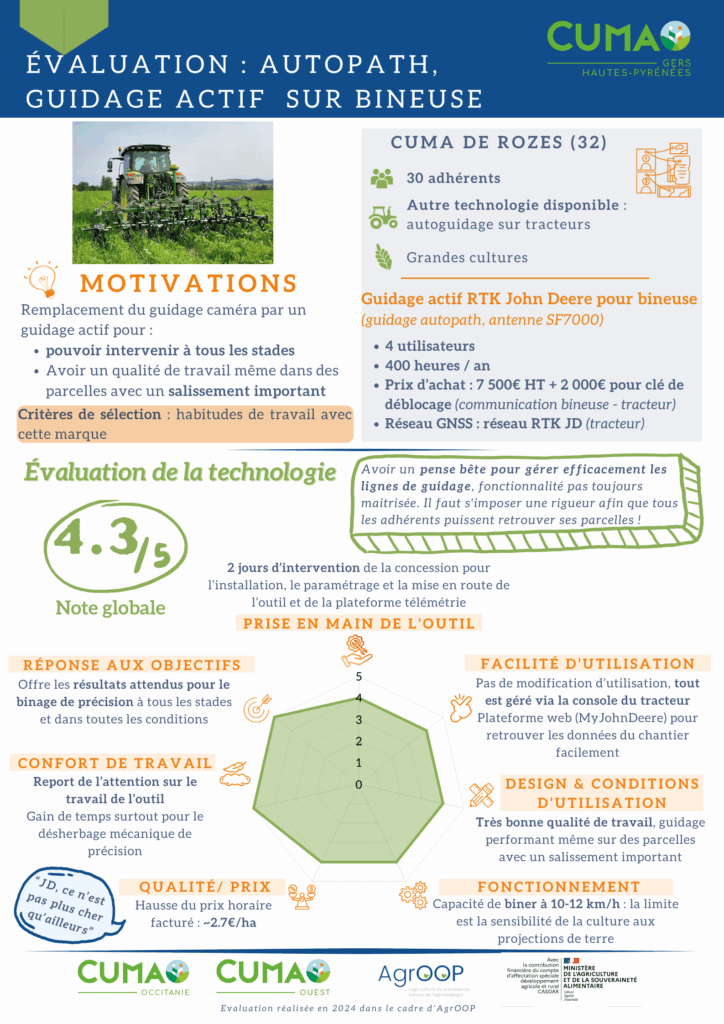 Évaluation d'une bineuse guidage actif RTK : retours de la Cuma de Rozès