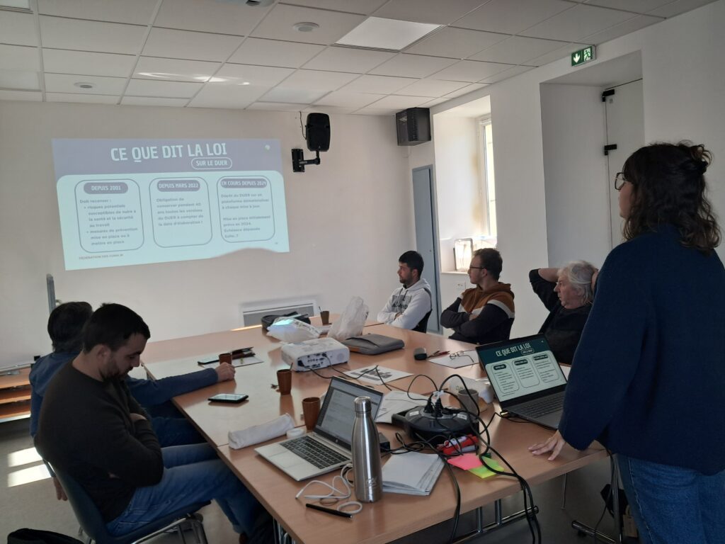 Adélie Delmas, animatrice emploi de la FD Cuma 81, apporte les éléments réglementaires et répond aux nombreuses questions du groupe.